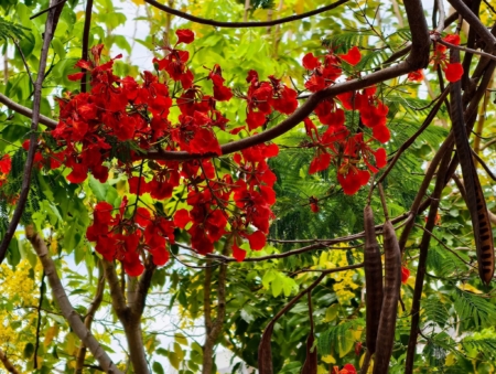 紅黃交織 鳳凰花與阿勃勒的交響曲
