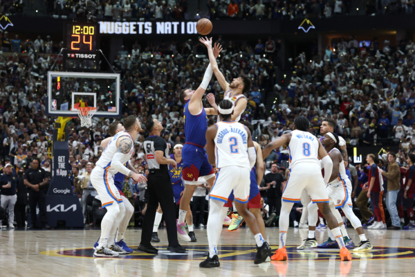 雷霆隊在西部半決賽上的對手是丹佛掘金隊。掘金隊常規賽戰績50勝32負,排在西部第四。季後賽首輪,掘金與快船打得難解難分,一直戰至「搶七」。最終第七戰,掘金隊在主場以120:101戰勝了快船隊,以總比分4:3的成績晉級西部半決賽。