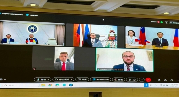 中華民國外交部政務次長吳志中與捷克政府烏克蘭重建事務特使柯白契尼(Tomáš Kopečný)線上出席見證簽署儀式。