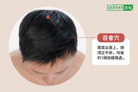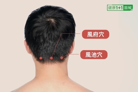 按摩穴位:從頭頂的「百會穴」沿後腦中線往下到頭頸交界處的「風府穴」和「啞門穴」。也可以稍微按摩兩側耳後的「翳風穴」和頸後凹窩的「風池穴」。
