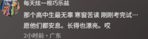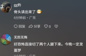 廣東網民在視頻區留言表示,「好恐怖,直接切了兩個人腿下來。」「骨頭都出來了。」「那個高中生最無辜,寒窗苦讀,剛剛考完試,願他們都安息。長得也漂亮,哎……」