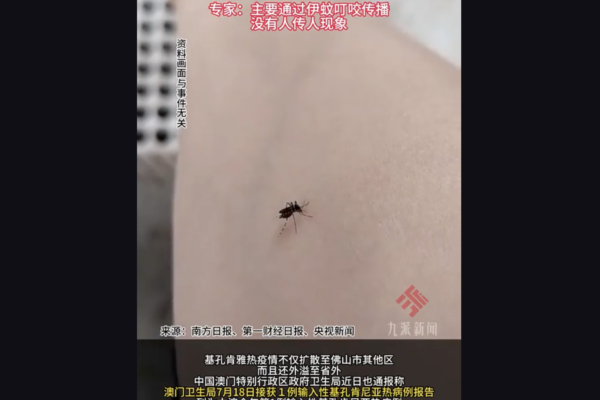 【大紀元2025年07月25日訊】(大紀元記者寧海鐘綜合報導)廣東佛山日前率先爆發「基孔肯尼亞熱」疫情,不到十天已通報超過4,000例,實際數據恐怕更高。有患者表示,嚴重時完全無法下地行走。目前疫情已擴散至澳門、北京。專家警告攜帶這類病毒的蚊子正在北移,恐將擴散至全國。世衛組織警告,這種病毒恐怕會引發全球大流行。