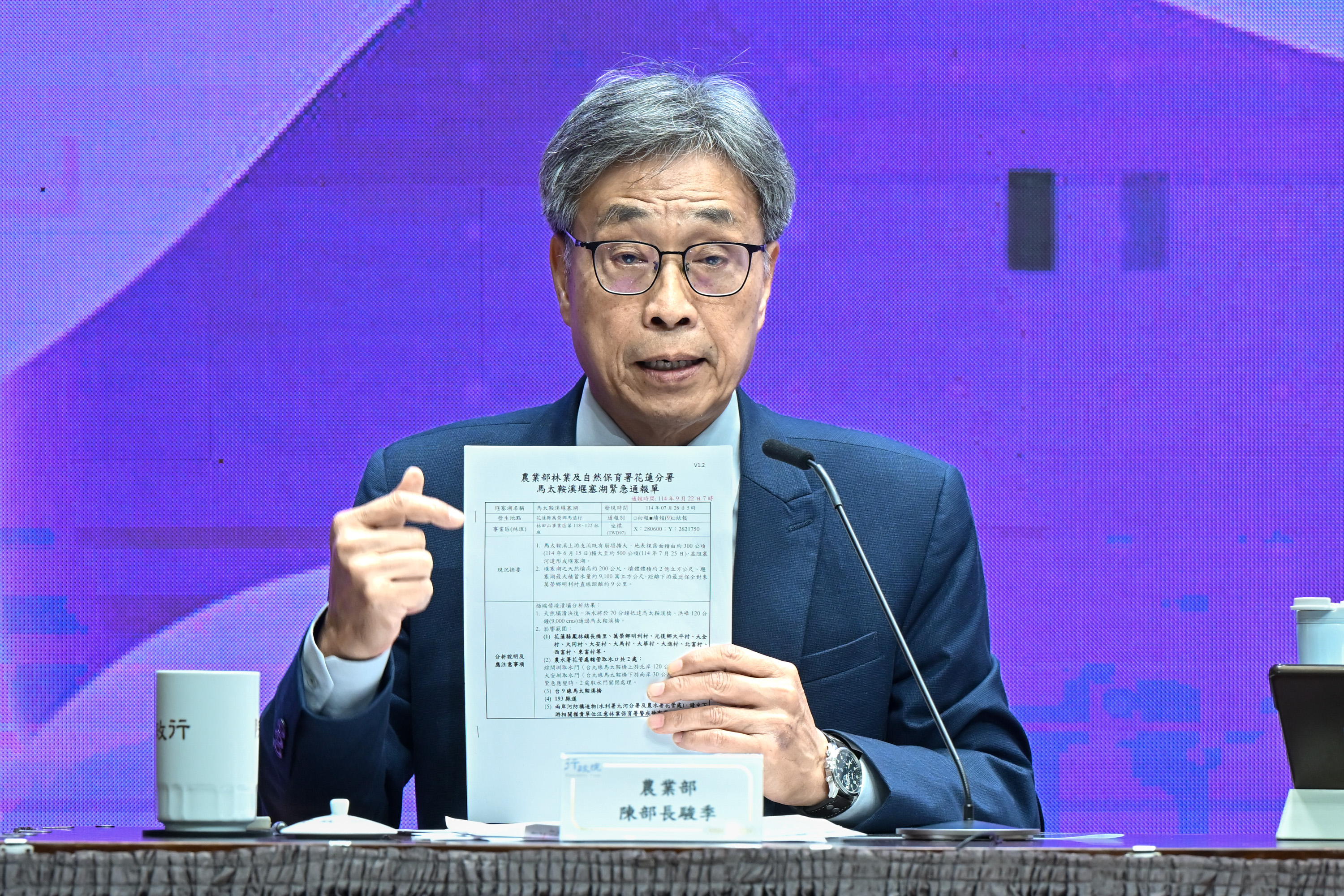 陳駿季25日出席行政院會後記者會時表示,監控馬太鞍溪堰塞湖過程中,農業部共進行3次專家會議與2次跨部會會議,透過17次的取像等用來做壩體與湖水量分析。