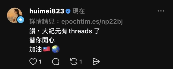 「《大紀元時報》-台灣」為回應網友需求,12月13日正式於Threads上開設官方帳號,陸續發布美國對台軍售、中共滲透台灣、中共活摘器官等新聞,獲得廣大迴響。