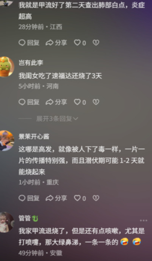 還有網友質疑,「不就是以前的新冠嗎?白肺?現在又成了甲流了。」「換了個名字而已。」