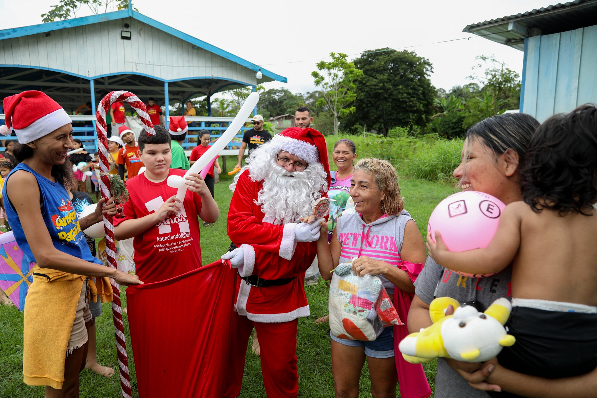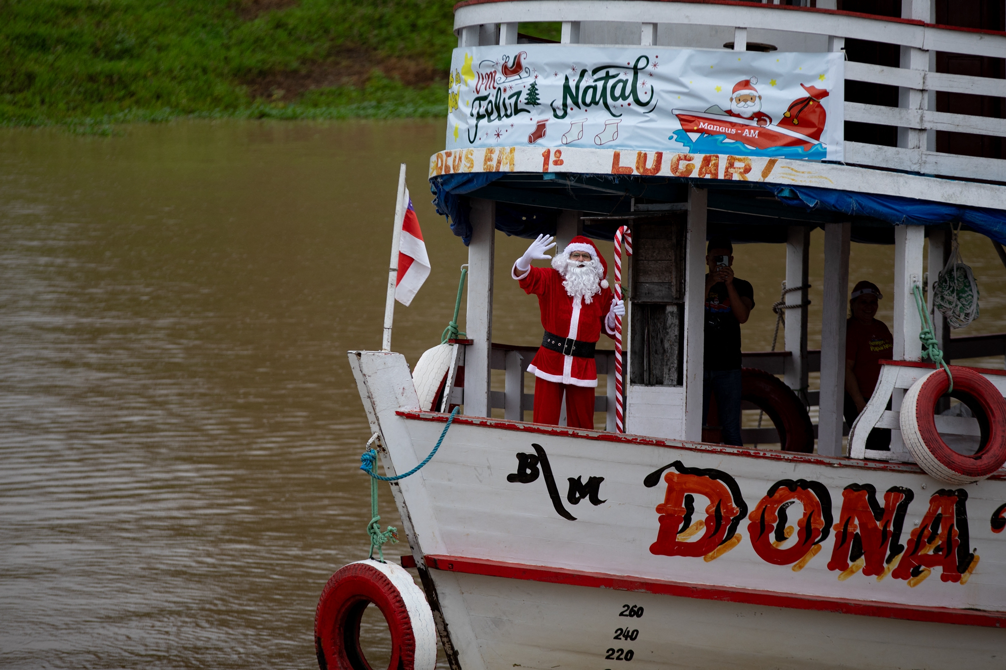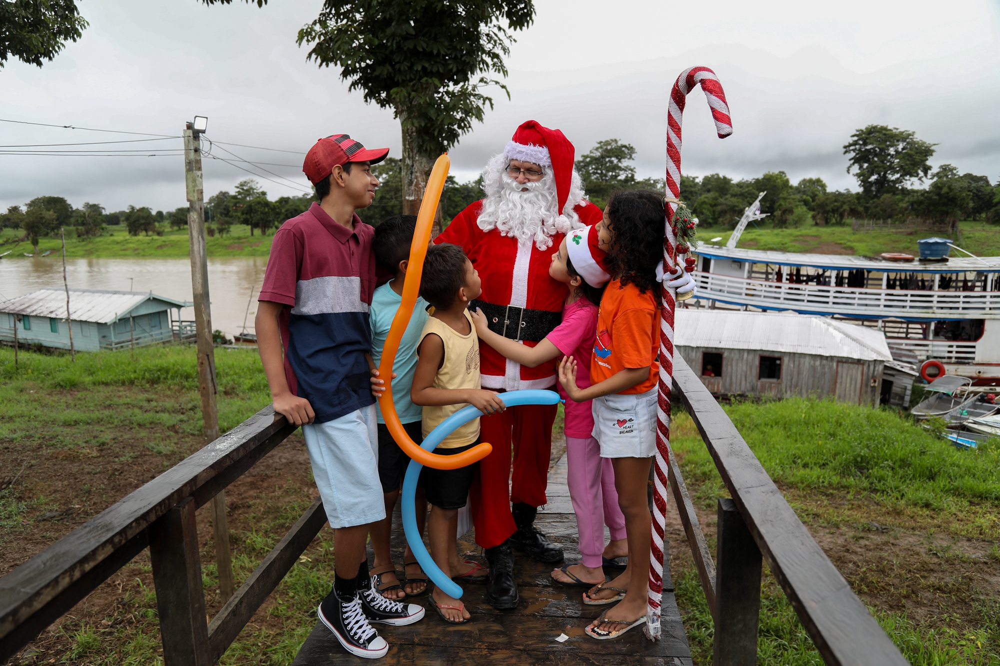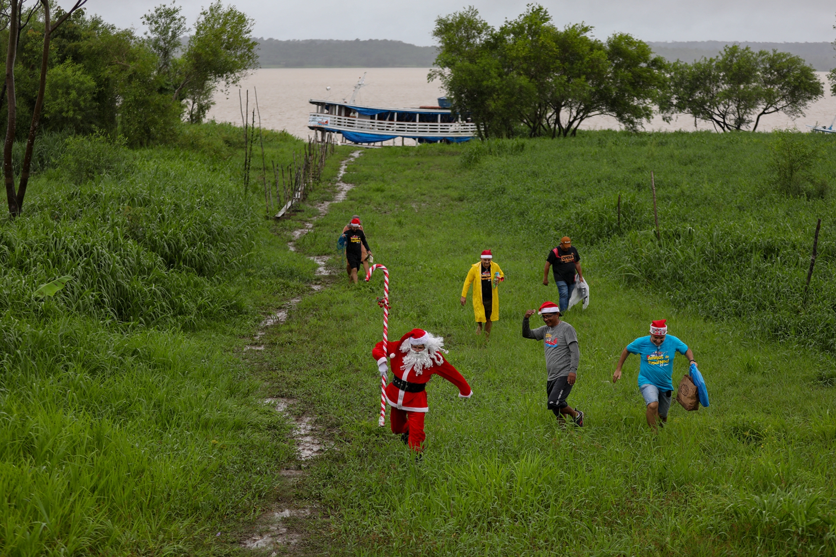該活動是由巴西慈善團隊Friends of Santa Claus主辦,該機構自1998年以來,每年都會在聖誕節前夕,安排穿上傳統聖誕服裝的聖誕老人,在一群志願者的協助下,為亞馬遜雨林農村社區的兒童派發聖誕禮物。