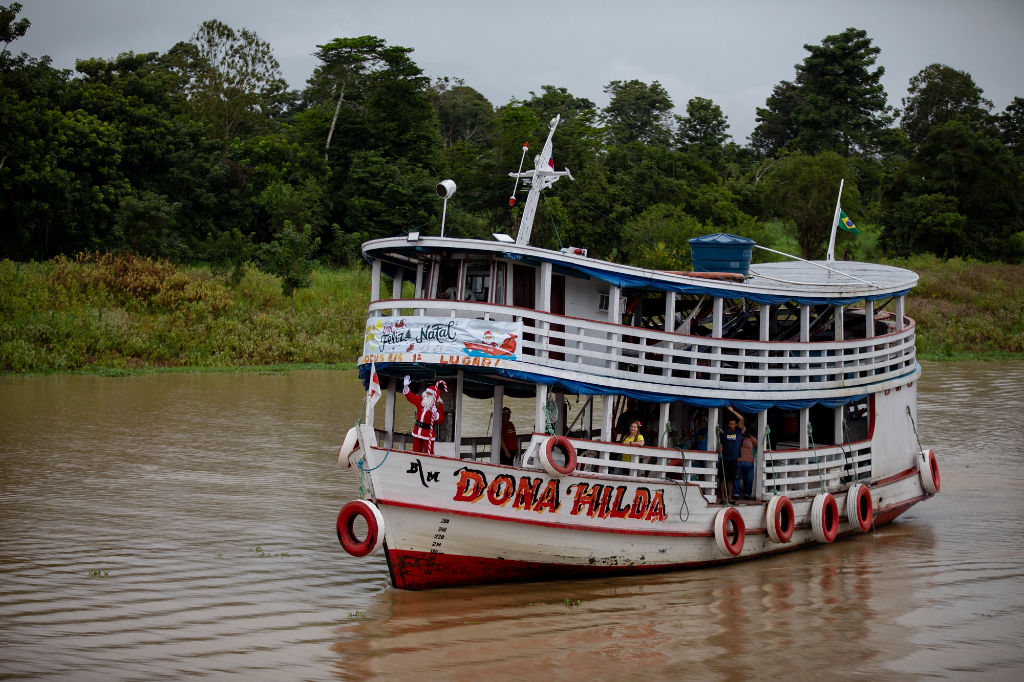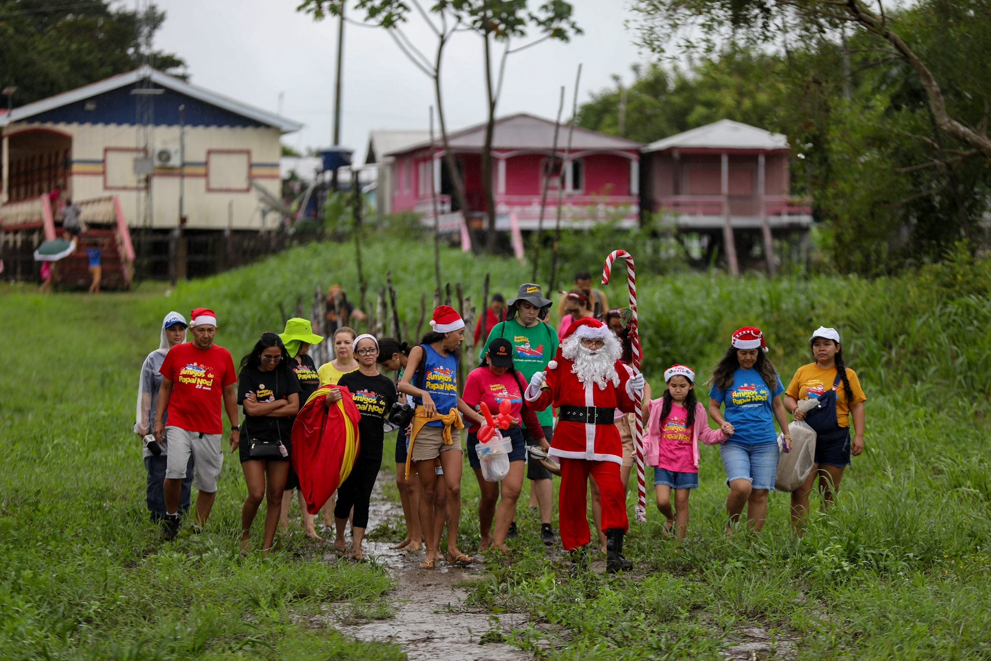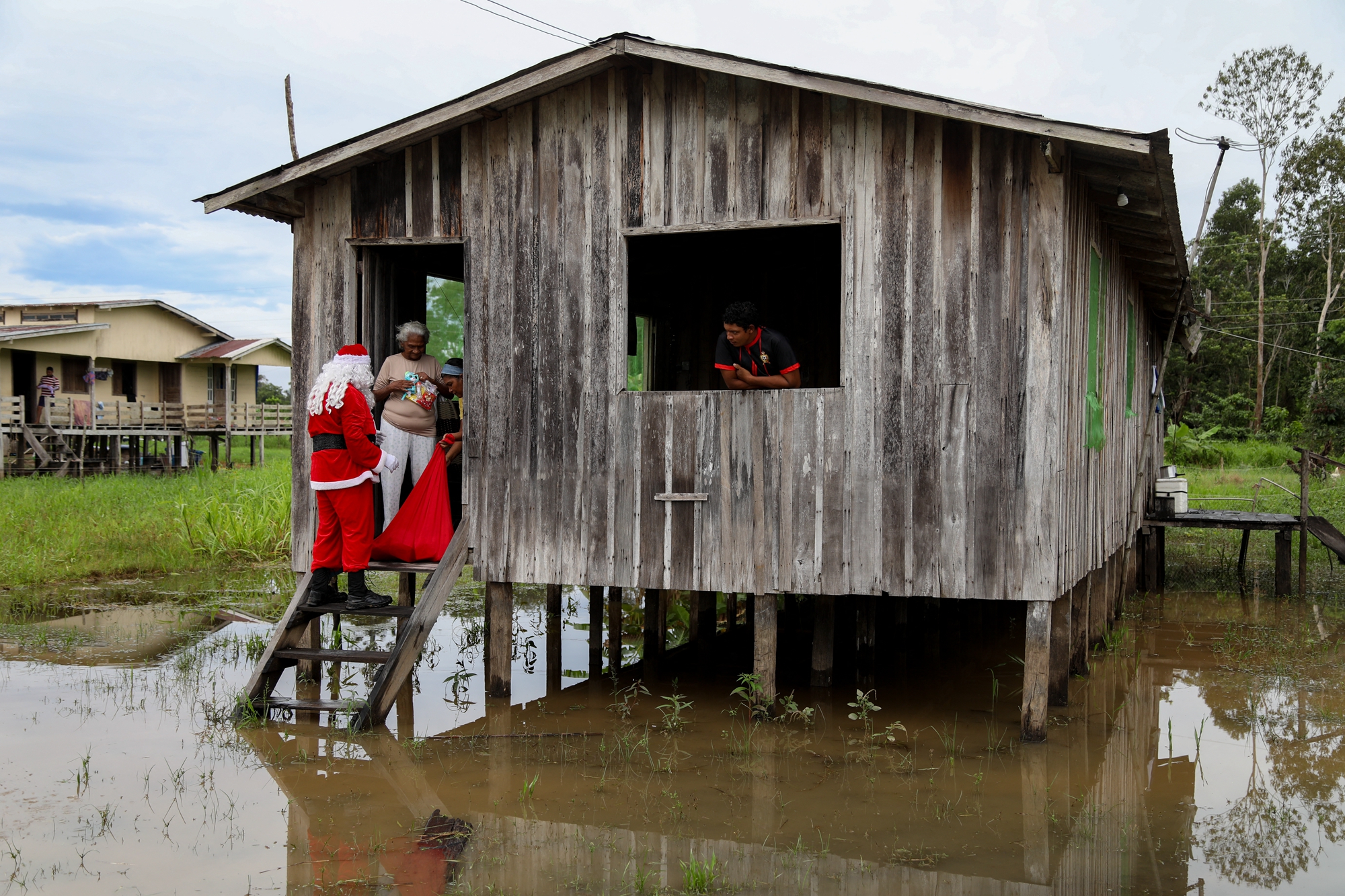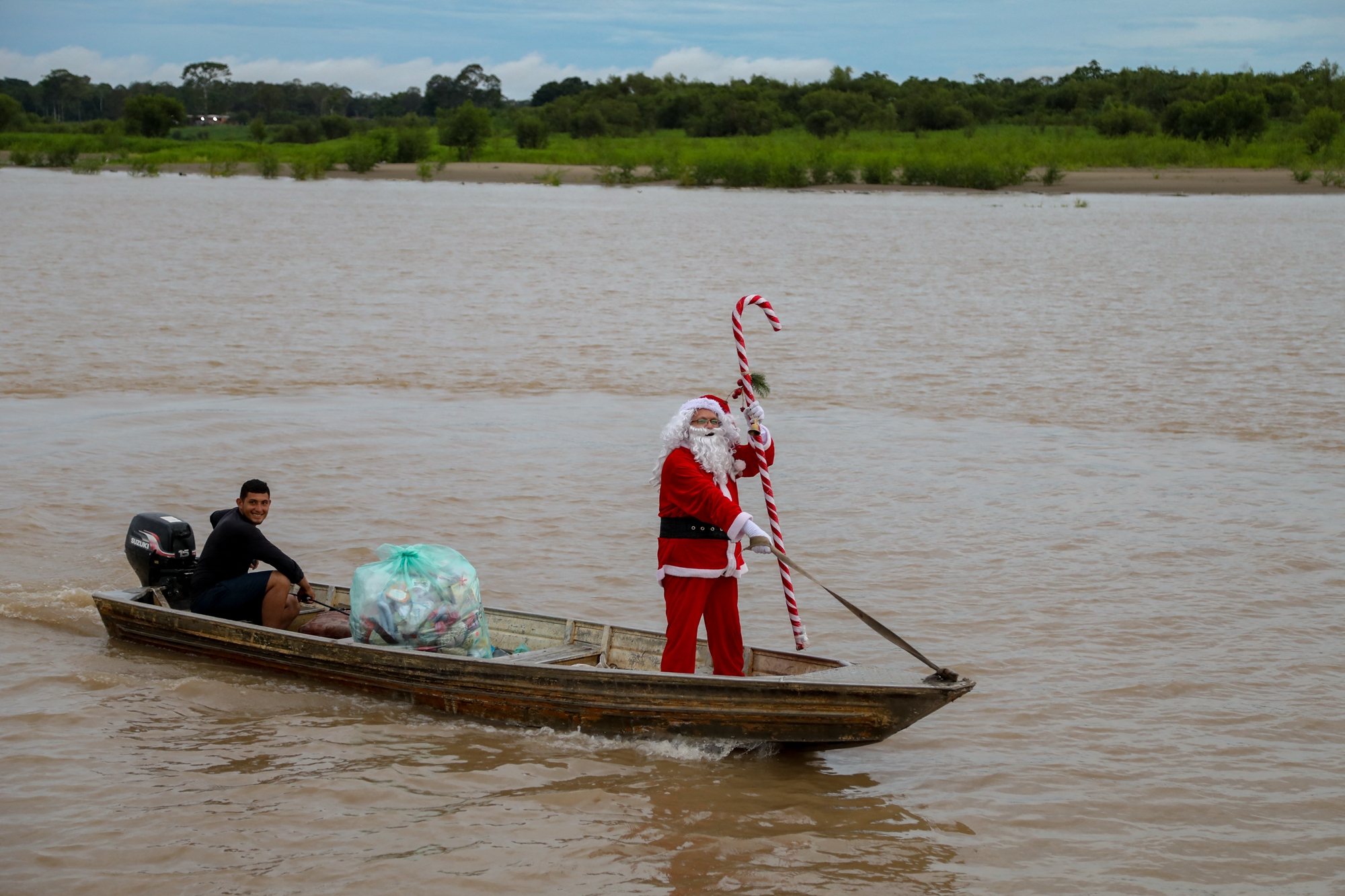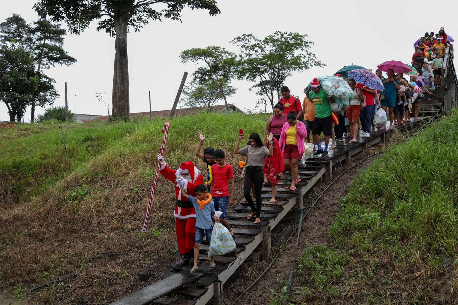 該活動是由巴西慈善團隊Friends of Santa Claus主辦,該機構自1998年以來,每年都會在聖誕節前夕,安排穿上傳統聖誕服裝的聖誕老人,在一群志願者的協助下,為亞馬遜雨林農村社區的兒童派發聖誕禮物。