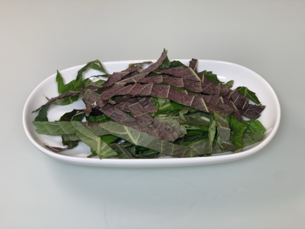紫蘇葉(Perilla Leaf):味辛、性溫,歸肺、脾經。《本草綱目》記載:「蘇葉行氣寬中,開胃氣、散風寒。」《名醫別錄》又說:「主中風寒熱,安胎氣。」 意思是說,它能理氣和中、祛寒解表、寬胸安胃,不論是風寒感冒、胸悶氣滯、食欲不振,都能派上用場。