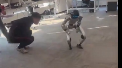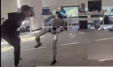 但意外出現在訓練師做出踢腿動作時,訓練師踢出左腿,機器人也踢出左腿,但當訓練師踢出右腿時,意外發生了,本來和訓練師並肩站著的機器人,突然轉向,面向訓練師並踢出右腿,重重的踢在了訓練師的腹部,訓練師立刻痛的蹲下身子。