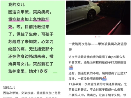 北京的一位寶媽9日直接在網上發籌款帖,「我的女兒因這次甲流,重症腦炎加上急性腦壞死。目前搶救過來了,保住了生命,可孩子甦醒成了未知數。心如刀絞般地痛,無法接受那個還在你身邊暢想未來,撒嬌賣萌女兒,突然躺在了監護室裡,她才7歲呀。」