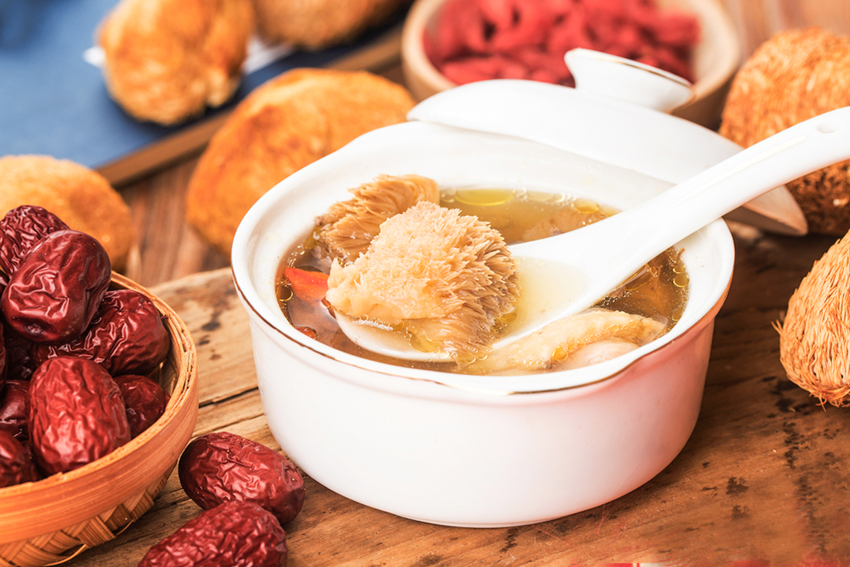 素食的人怎麼補?有一個不錯的溫暖湯——麻油紅棗猴頭菇湯。