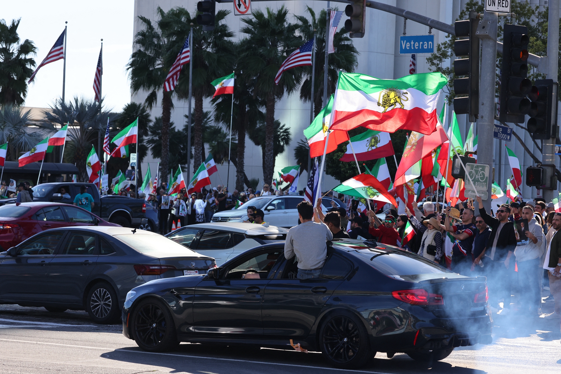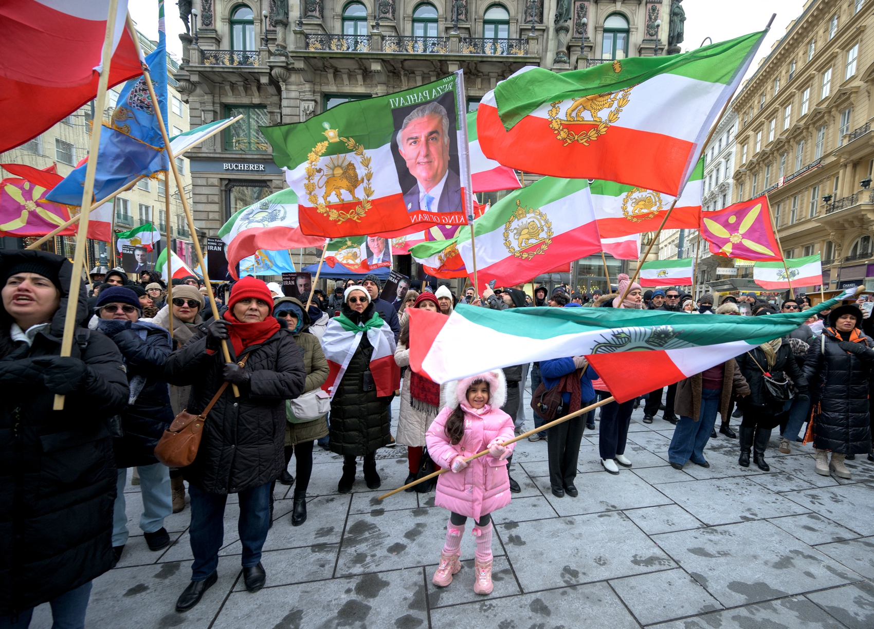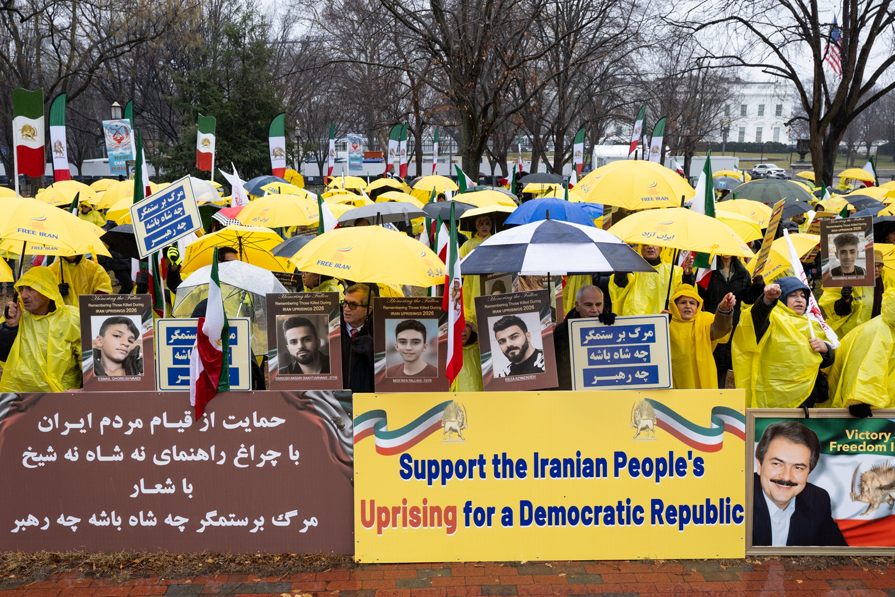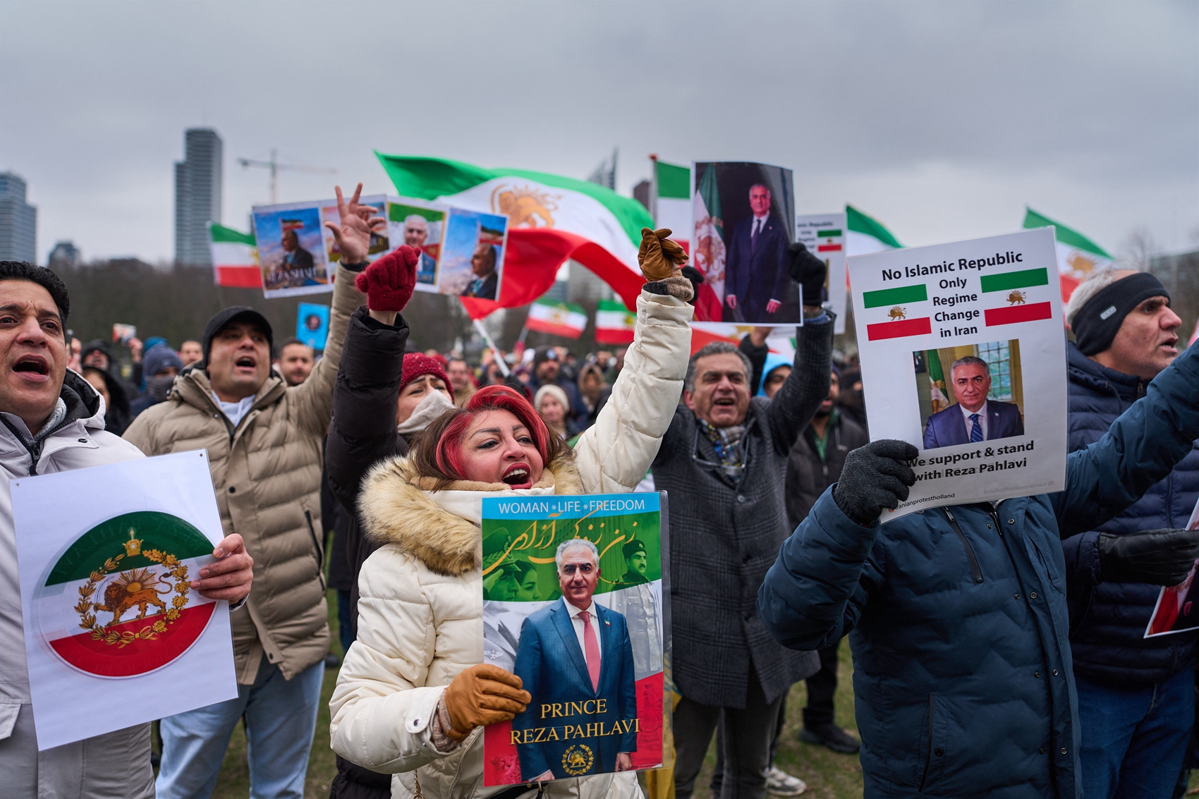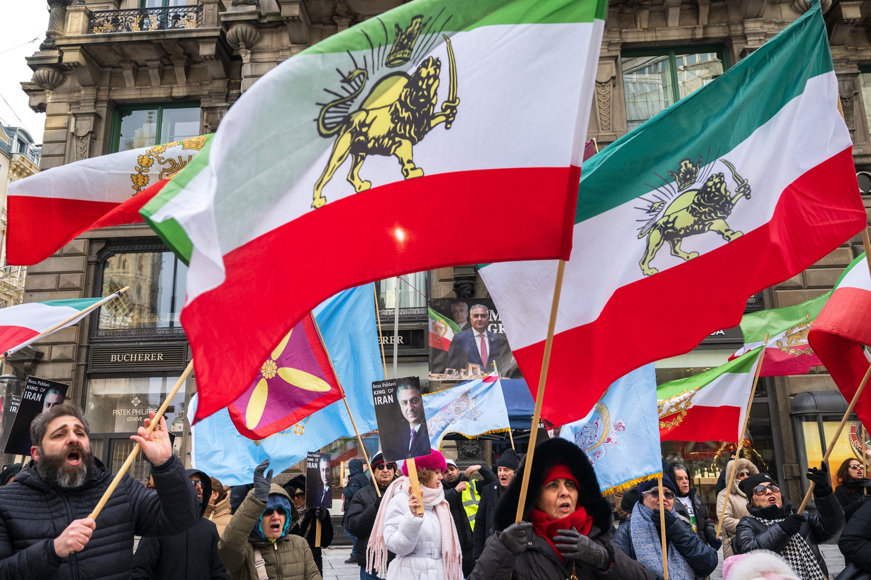 在巴黎,超過2000人揮舞著1979年伊朗革命之前的獅子太陽旗,在示威現場高喊「拒絕恐怖分子的伊朗伊斯蘭共和國(Islamic Republic of Iran)」。