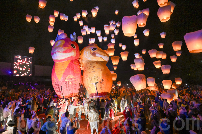 【大紀元2026年03月03日訊】(大紀元記者鍾元台灣報導)今天(3月3日)是元宵節,台灣新北市政府舉辦的「2026平溪天燈節」,在晚間施放全球首創的2盞20呎「龍馬」神獸主燈。