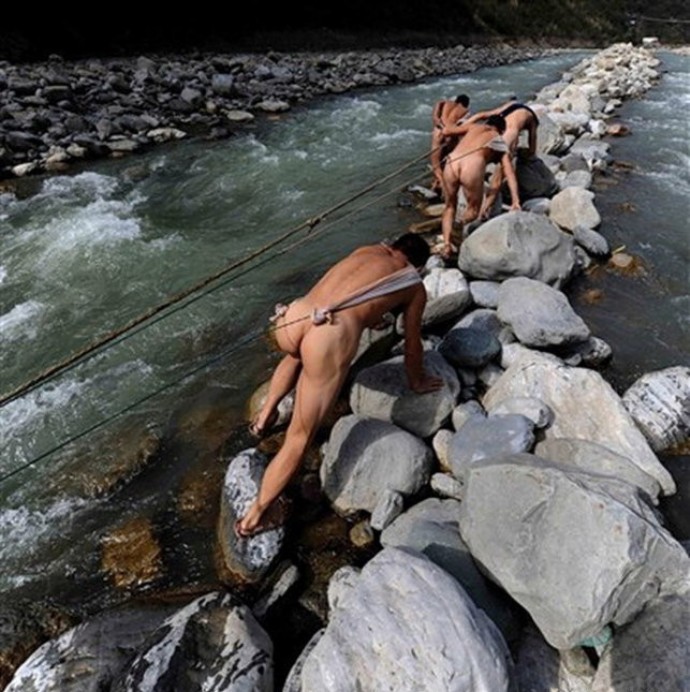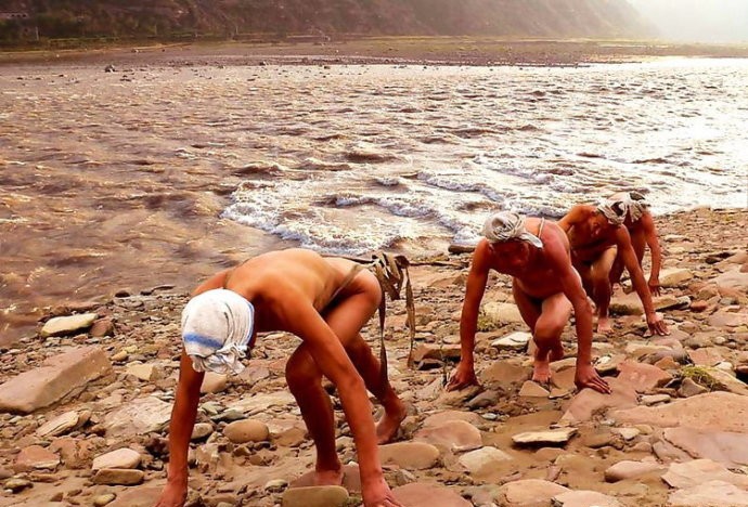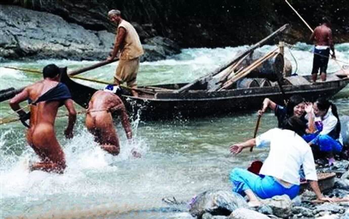 縴夫多是家境貧寒之士,如穿著衣服,汗浸鹽汲加上纖索的磨損,衣服能管幾天?拉縴時要頻繁下水,在時間上容不得寬衣解帶。最重要的是防病,如果穿著衣服,一會兒岸上,一會兒水里,衣服在身上乾了濕,濕了乾,不僅不方便,而且容易得風濕、關節炎之類的病,所以不如不穿衣服。
