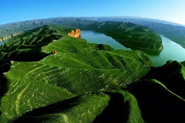 從三門峽大壩至山西芮城大禹渡120公里間,碧波粼粼 ,一望無際,似天池銀河。兩岸青山綠樹,綿延不斷,山光水色,相映如畫。
