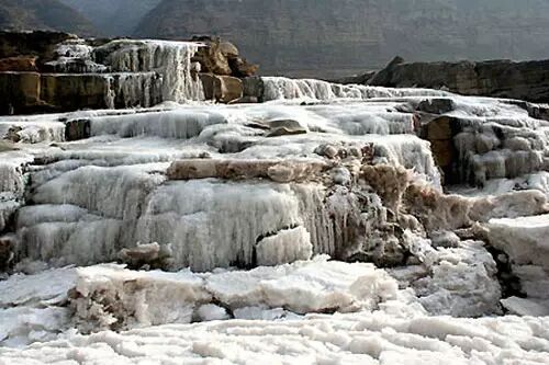 黃河壺口瀑布位於山西省吉縣西部南村坡下,是黃河河道上的第一大瀑布,它飛流直瀉,氣吞山河,濤聲震天,兩岸殘崖峭壁,是天下奇觀。壺口瀑布是中國第二大瀑布,世界上最大的黃色瀑布。在水量大的夏季,壺口瀑布氣勢恢宏;而到了冬季,整個水面全部冰凍,結出罕見的巨大冰瀑。