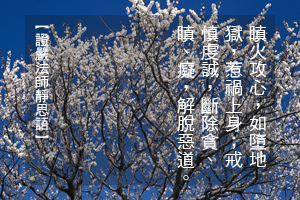 瞋火攻心,如墮地獄,惹禍上身;戒慎虔誠,斷除貪、瞋、癡,解脫惡道。
