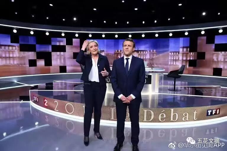 5月3日,马克龙和极右翼政党国民阵线领袖勒庞在电视上展开大选终极辩论,被称为“骂人不说脏字的最佳教学片”,马克龙讽刺勒庞是“寄生虫”和“说谎者”,在总结环节,当勒庞再度打断马克龙时,马克龙反击道