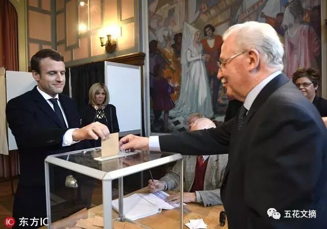 5月7日,大选终极投票,马克龙携布里吉特一起投票。