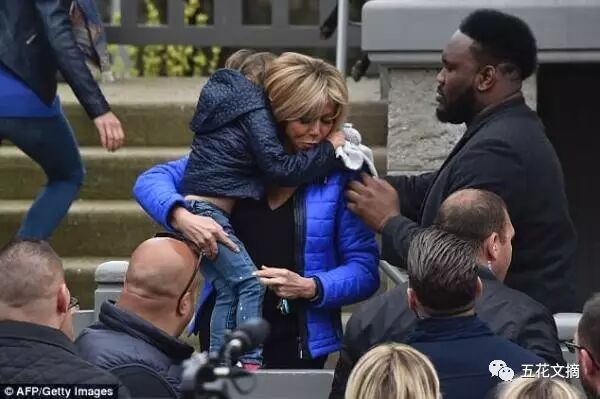 马克龙在台上竞选时,布里吉特都会在台下认真关注。