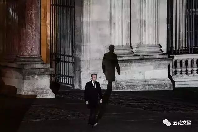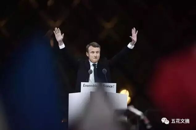 马克龙胜选后走向演讲场地