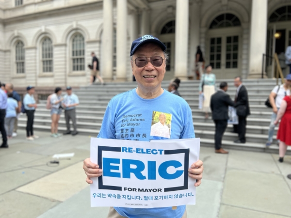 【大紀元2025年06月27日訊】(大紀元記者施萍紐約報導)週四(6月26日),紐約市長亞當斯在市政廳台階前舉行了新聞發布會,宣布他的競選市長連任活動正式開始。現場聚集了數百亞當斯的支持者,從穿戴上就可以看出來這些人來自紐約市的各個宗教背景社區,有猶太人、穆斯林、黑人、拉丁族裔以及華裔面孔的亞洲人。