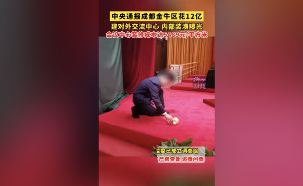 2021年7月至2023年12月,四川成都金牛區投資12.16億元建設8.22萬平方米的對外交流中心項目,使用進口石材、手工羊毛地毯和玻璃幕牆,被曝光後同樣引發輿論譁然。