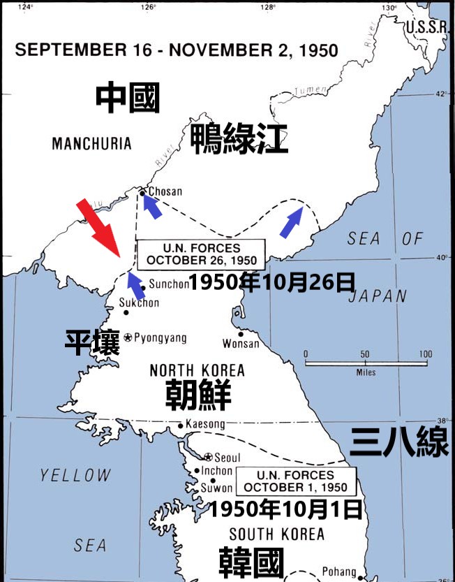 10月底,聯合國軍共關押了13.5萬名朝鮮軍隊戰俘,並向朝鮮北部推進,但西部和中東部戰線的聯合國軍之間有一大片山區相隔。