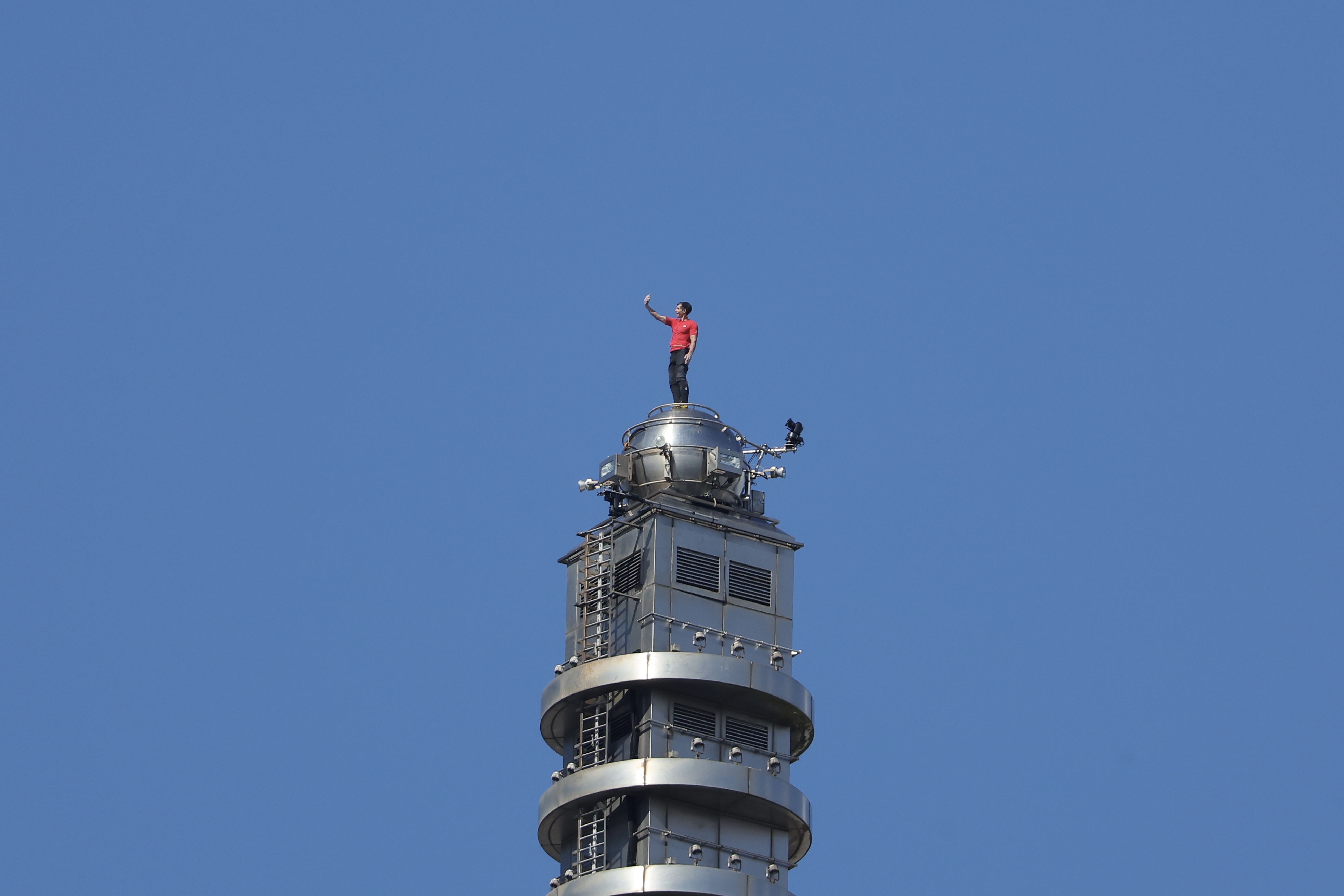25日早上10時43分,霍諾德成功登上台北101頂端後,他揮舞雙手向群眾及鏡頭致意,甚至拿出手機自拍,還透過麥克風表示上面風很大,「風很大,所以我想著,不要從尖頂上掉下來。我試圖保持良好的平衡。但這是多麼不可思議的位置,多麼美好的方式看台北。」