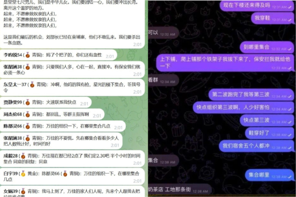 據網傳對話截圖顯示,有組織者發出指示,「最後2分鐘點火,衝」「宿舍起火了」「快點衝」「大家一起衝第二波」「第二波跑完了,我等第三波。」「只要我們人多,心在一起,直接衝」「萬佳的組織一下」「現在不衝做一輩子狗推嗎,被別人一輩子壓榨嗎,還是等到你沒有價值被買賣嗎,被賣來賣去,被打得半死不活嗎?」