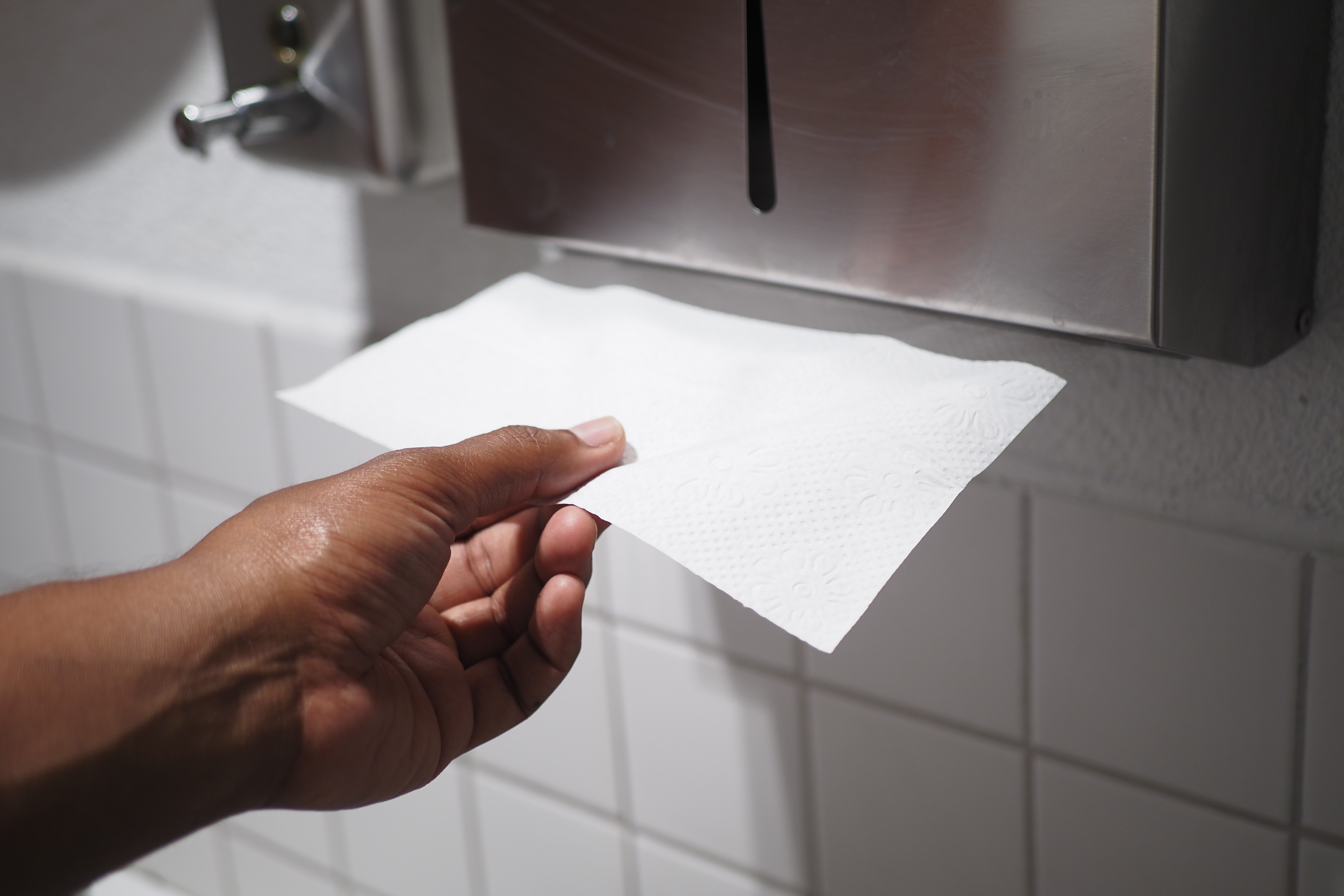 紙巾的另一個缺點是它經常用完,這意味著你伸手去拿的時候,可能會發現廁所裡已經沒紙了。而紙巾盒也是個問題。如果紙巾盒是那種需要伸手進去才能拿到的,而不是那種把手伸到下面就能取用的免接觸式紙巾盒,那紙巾盒就很容易變髒。