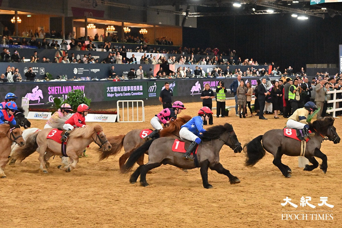 浪琴香港國際馬術盛典,今日(1月31日)帶來一系列精彩比賽。圖為雪特蘭小馬大賽。(吳銳略/大紀元)