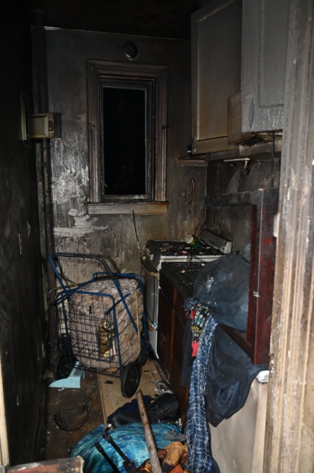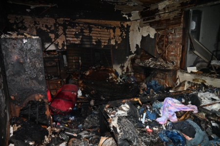 消防局發布的現場照片顯示,這些發生火災的多處住宅內部堆滿雜物,包括破損家具、衣物、垃圾袋、紙箱及各類可燃物,部分走道和房間幾乎無法通行。火災後的房屋內部被嚴重燒毀,地面散落大量燒焦的雜物,顯示火勢迅速蔓延並造成嚴重破壞。